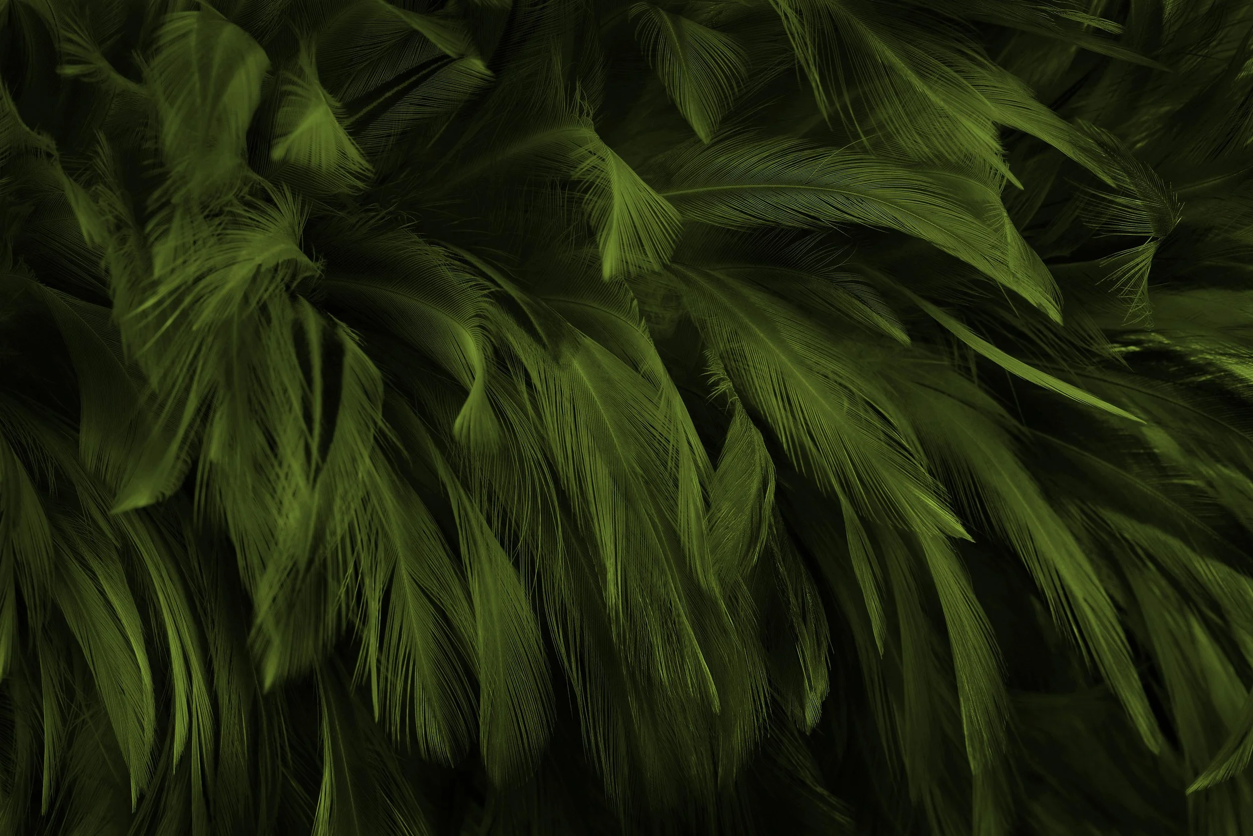 A repeating pattern of olive green leaf shapes with black curved lines on a black background.